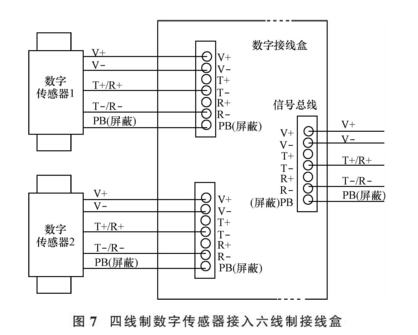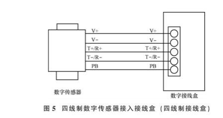 面說(shuō)過(guò), 數(shù)字傳感器分四線制和六線制兩種方式, 下面分別說(shuō)明一下兩種制式傳感器連線接入數(shù)字接線盒的方法。