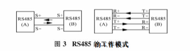 特點(diǎn)是傳輸距離遠(yuǎn), 通信可靠性高, 可以實(shí)現(xiàn)以總線為基礎(chǔ)的多設(shè)備網(wǎng)絡(luò)方式通信等特點(diǎn)。RS485 通常有半雙工和全雙工兩種工作方式, 如圖 3 所示。