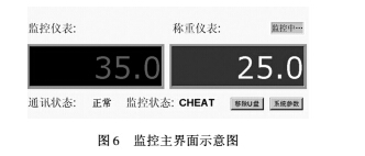 通訊狀態(tài): 當(dāng)前監(jiān)控終端與稱重儀表通訊狀態(tài),當(dāng)通訊中斷時(shí)狀態(tài)顯示“異常”;監(jiān)控狀態(tài): 當(dāng)監(jiān)控終端與稱重儀表的差值在設(shè)定范圍內(nèi)時(shí)顯示“正常”,否則顯示為“CHEAT”。