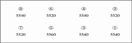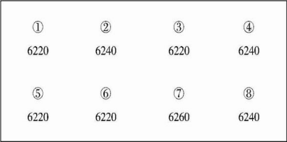 按照調(diào)試方法4,將6220定為調(diào)試基準(zhǔn)點(diǎn),分別調(diào)試修正②、④、⑦、⑧傳感器角差,測(cè)得各角對(duì)應(yīng)系數(shù)分別為:②1.00458,④1.00427,⑦1.00412,⑧1.00307。