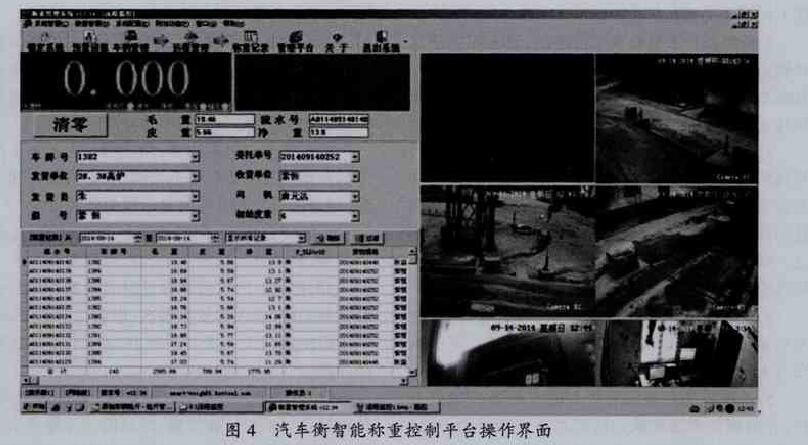 地磅智能稱重控制平臺主要由工控機和各 類信息采集模塊組成,其功能包括標簽電子標簽信 息采集與管理、地磅稱重數(shù)據采集和管理、視頻 圖像采集與管理、車輛磅秤輔助系統(tǒng)、LED大屏幕 等,圖4為地磅智能稱重控制平臺操作界面。