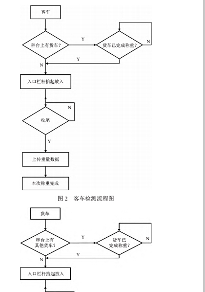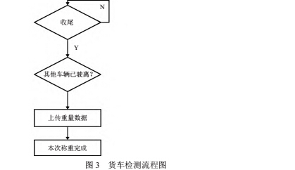如圖 3 所示,當(dāng)車輛預(yù)讀天線檢測(cè)到通過(guò)車輛為貨車時(shí),若秤臺(tái)上無(wú)其他貨車,則前置欄桿抬起,車輛直接駛?cè)搿H舫优_(tái)上有其他貨車,則待該貨車完成稱重后,欄桿抬起車輛駛?cè)搿?br /> 以上流程中,除稱重結(jié)果需與車道計(jì)算機(jī)通信外,其余全部由稱重系統(tǒng)負(fù)責(zé)控制。