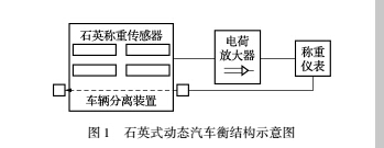 石英式動態地磅主要由石英稱重傳感器、電 荷放大器、稱重儀表、車輛分離裝置等組成。如圖1 所示。