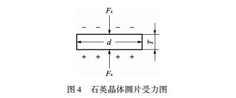 式中:Qx為石英晶體圓片垂直于Fx平面產生的電 荷;dll為石英晶體的縱向壓電模數,dll - 2.31pC/N。