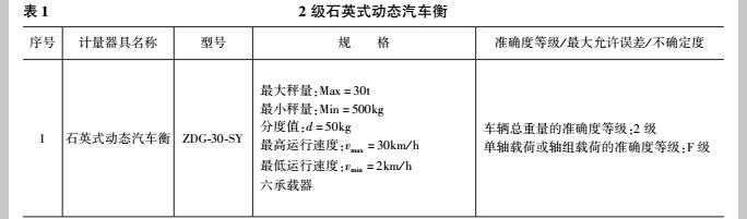 廣州根據多排布 局的石英式動態汽車衡設計原理,采用Kistler石 英稱重傳感器,生產的車輛整車總重量的準確度 等級為2級的石英式動態汽車衡(如表1所示), 通過了國家自動衡器型式評價實驗室(山東)進 行的型式評價,是國內第一家取得最高準確度等 級石英式動態汽車衡型式批準證書和生產許可 證的廠家。