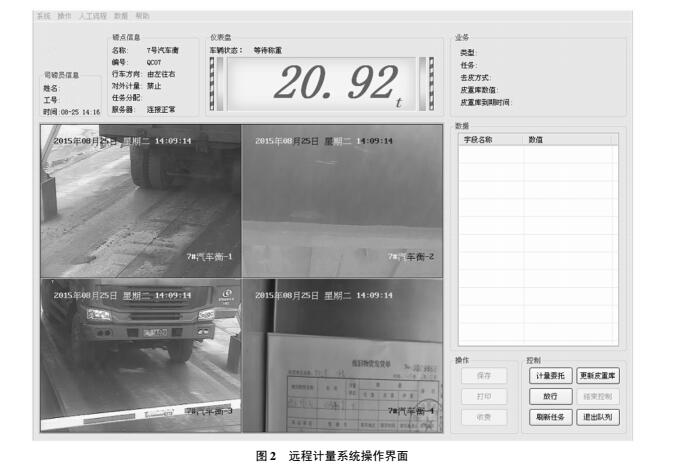 該分系統接收到計量任務后,計量人員通過界面視頻核對車輛信息,檢查計量委托及計量類型、收發貨單位等,確保信息準確后保存數據,數據包含車輛信息、視頻信息、稱重信息等,數據同步上傳至中心數據庫。