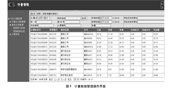 重鋼地磅計量管理系統由硬件控制系統、任務調度系統、遠程計量系統3個計量分系統和計量數據管理系統組成。